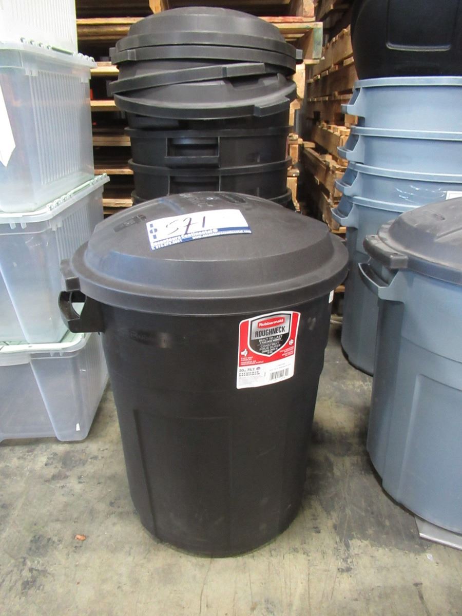 LOT OF 5 TRASH BINS 20GALS RUBBERMAID w/CVR