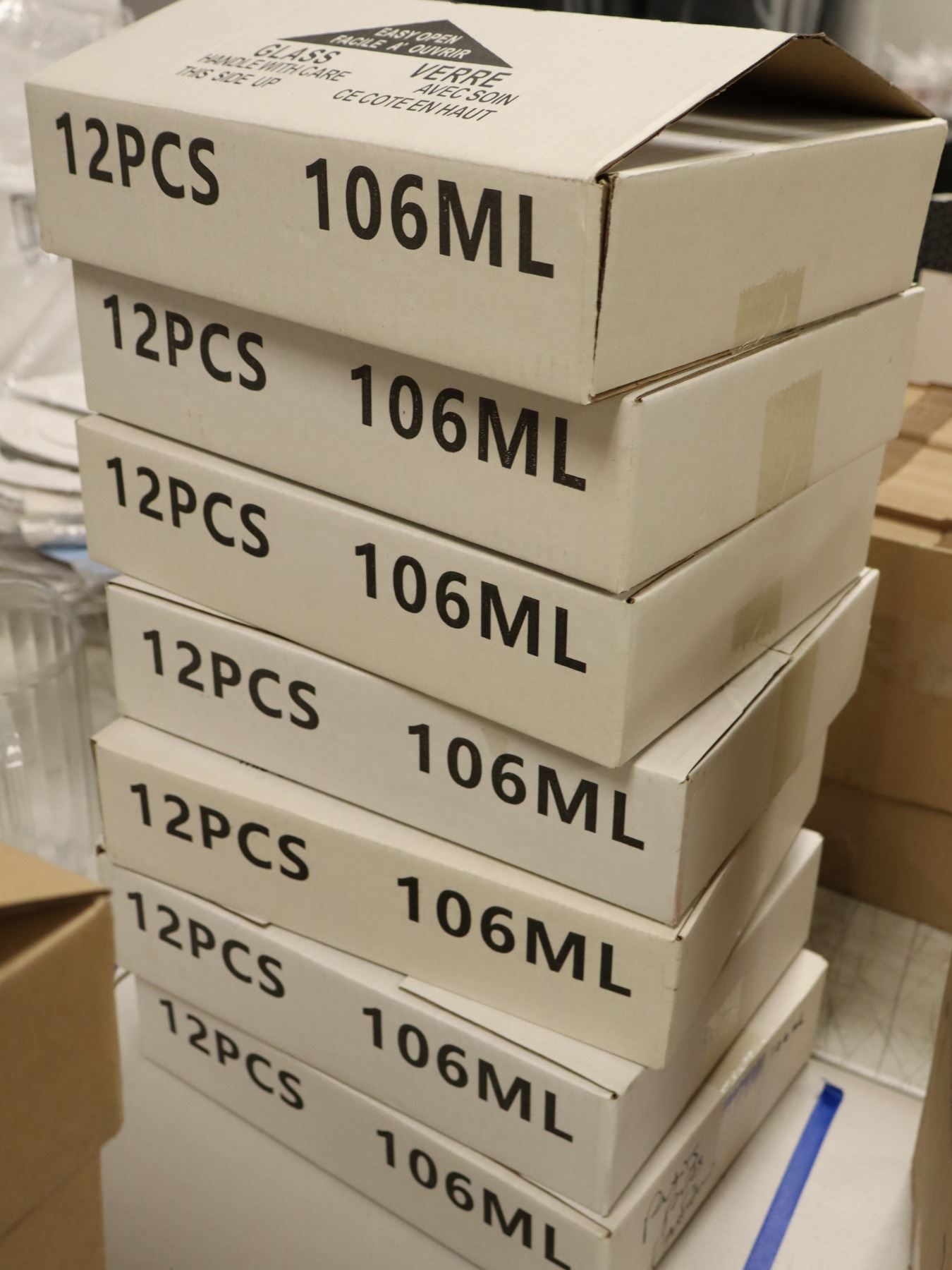 LOT DE 84 MINI POTS 106ml(SANS COUVERCLES) (7btes DE 12mcx)
