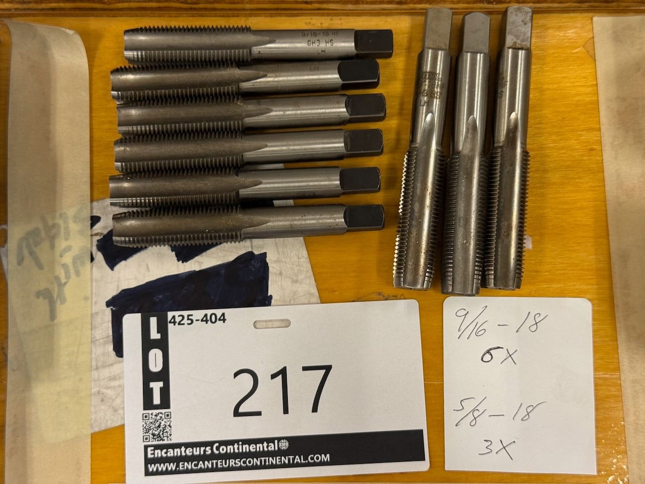 LOT DE 9 TAPS ASST (6) 6-18 X 9/16, (3) 18 X 5/8