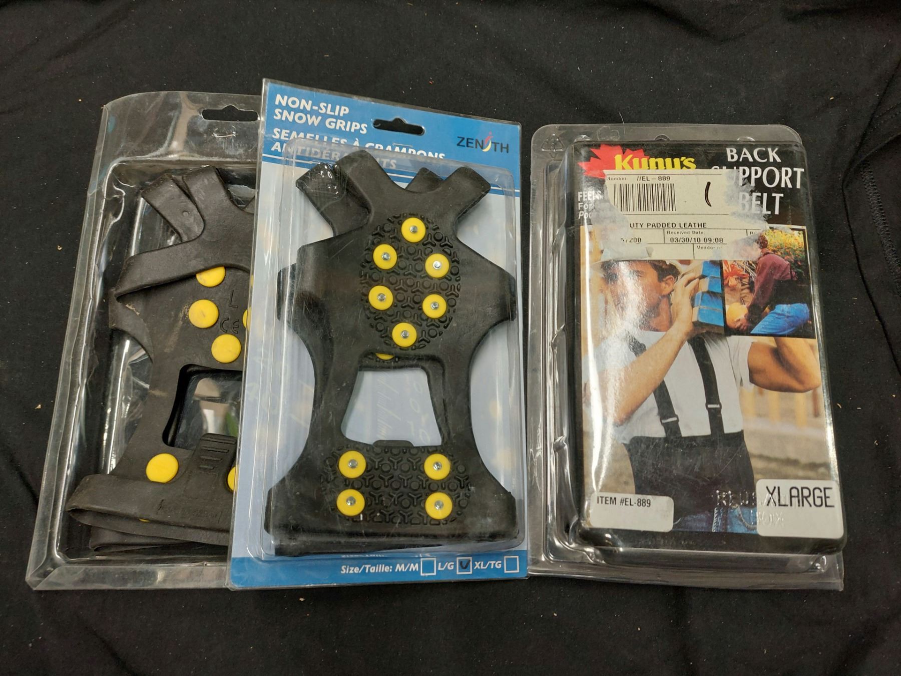 LOT DE PRODUITS ASST. 2 X SEMELLES À CRAMPON 1 X CEINTURE DE SOUTIEN