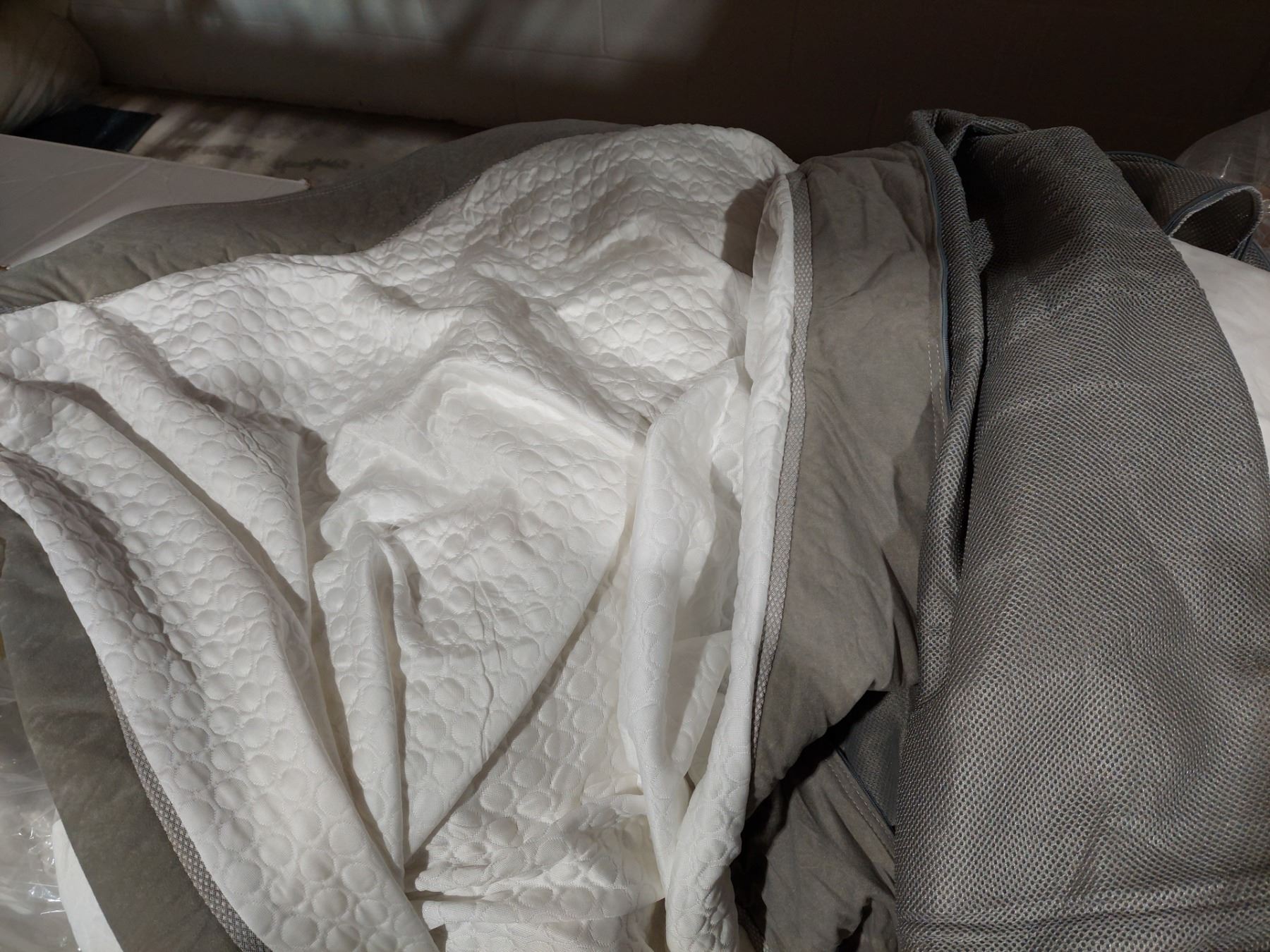 LOT OF 15 GREY MATTRESS COVERS, 12 KING AND 3 TWIN XL