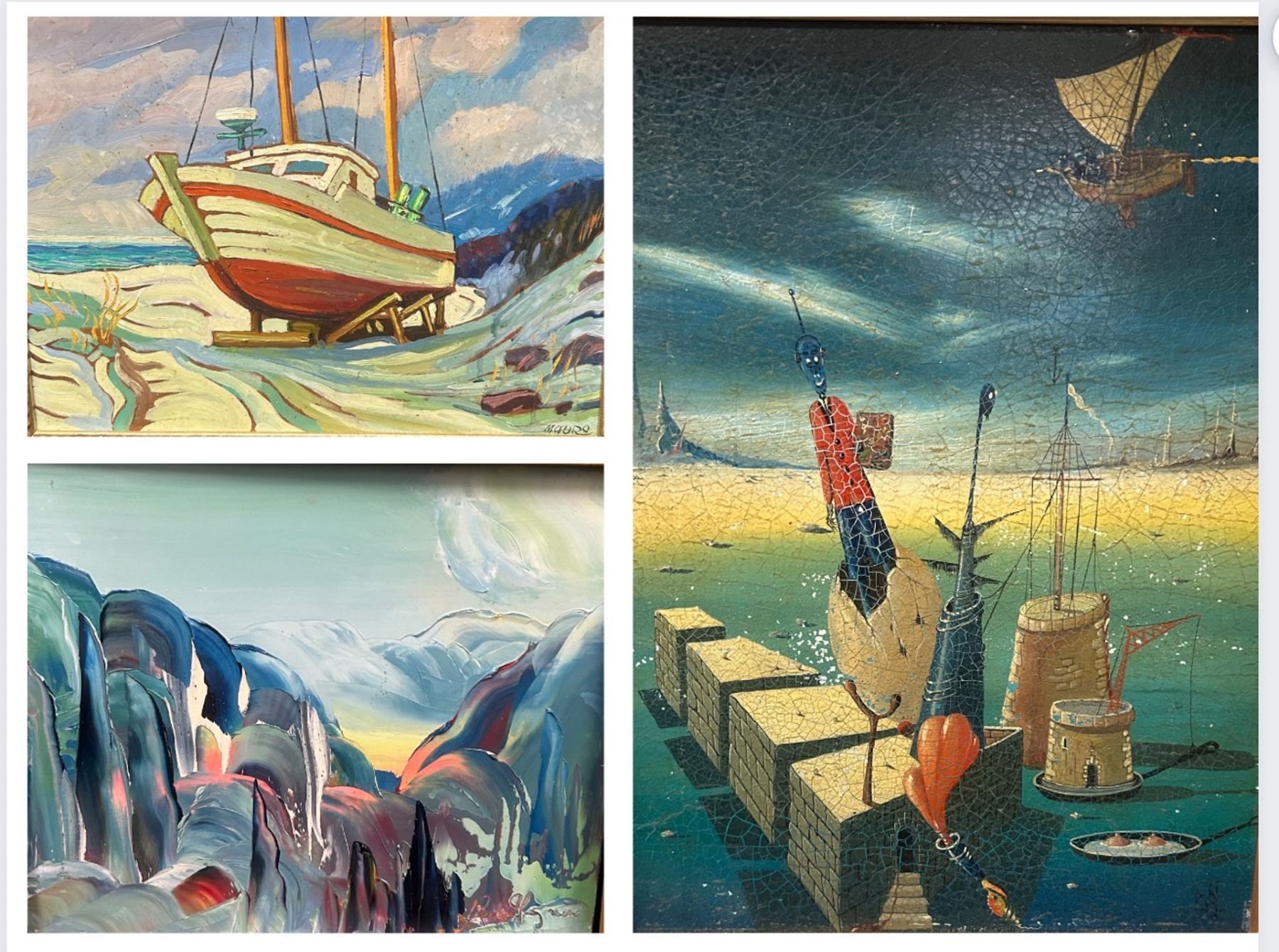 19" 1/2 X 15", 22" X 18", 18" 1/2 X 16" 1/2, SIGNED: MAURO…., 1. Maybe painting by Edward Wadsworth 1912,