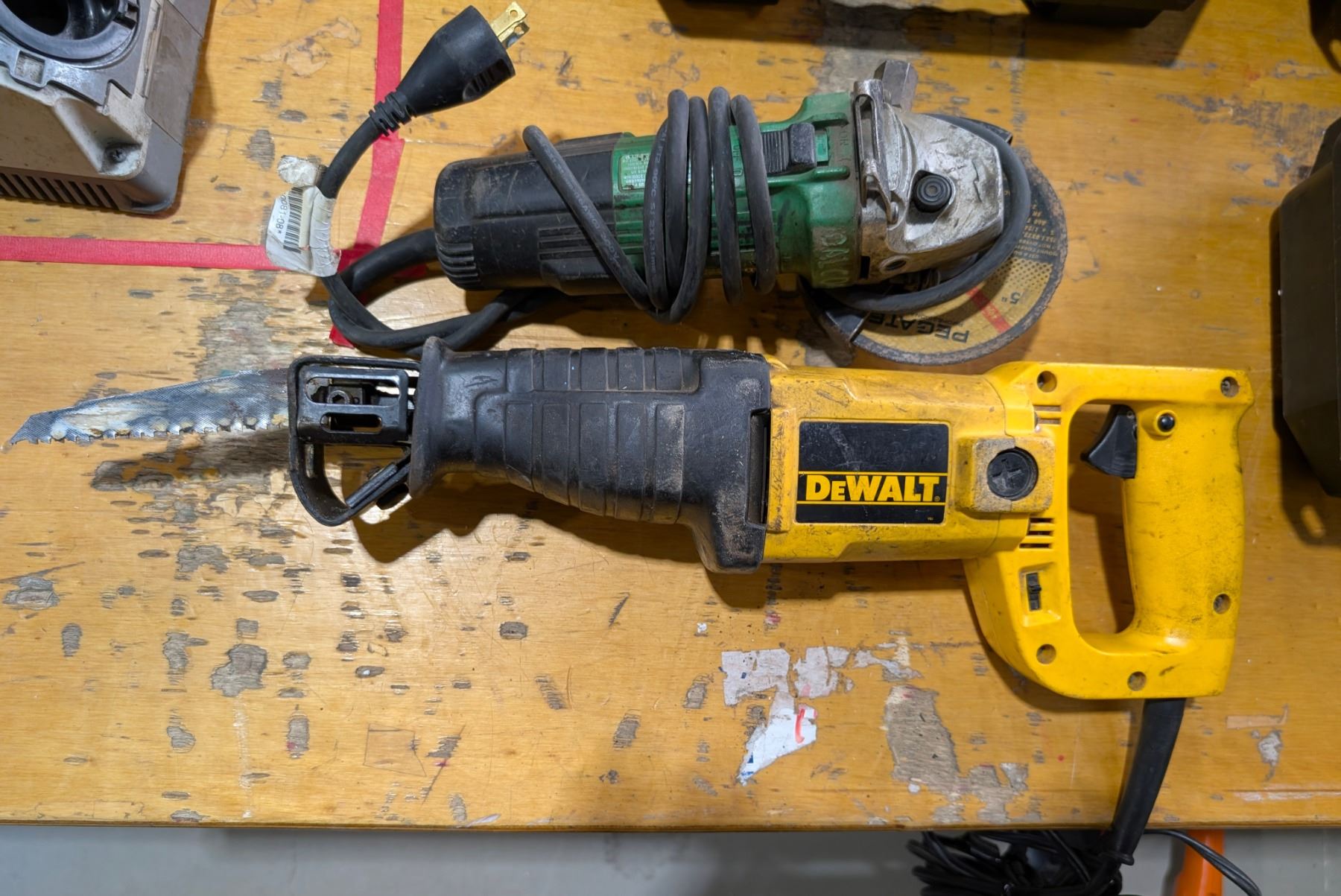 LOT: DEWALT #DW304 ELECTRIC RECIPROCATING SAW AND HITACHI #G1252 5"ANGLE GRINDER