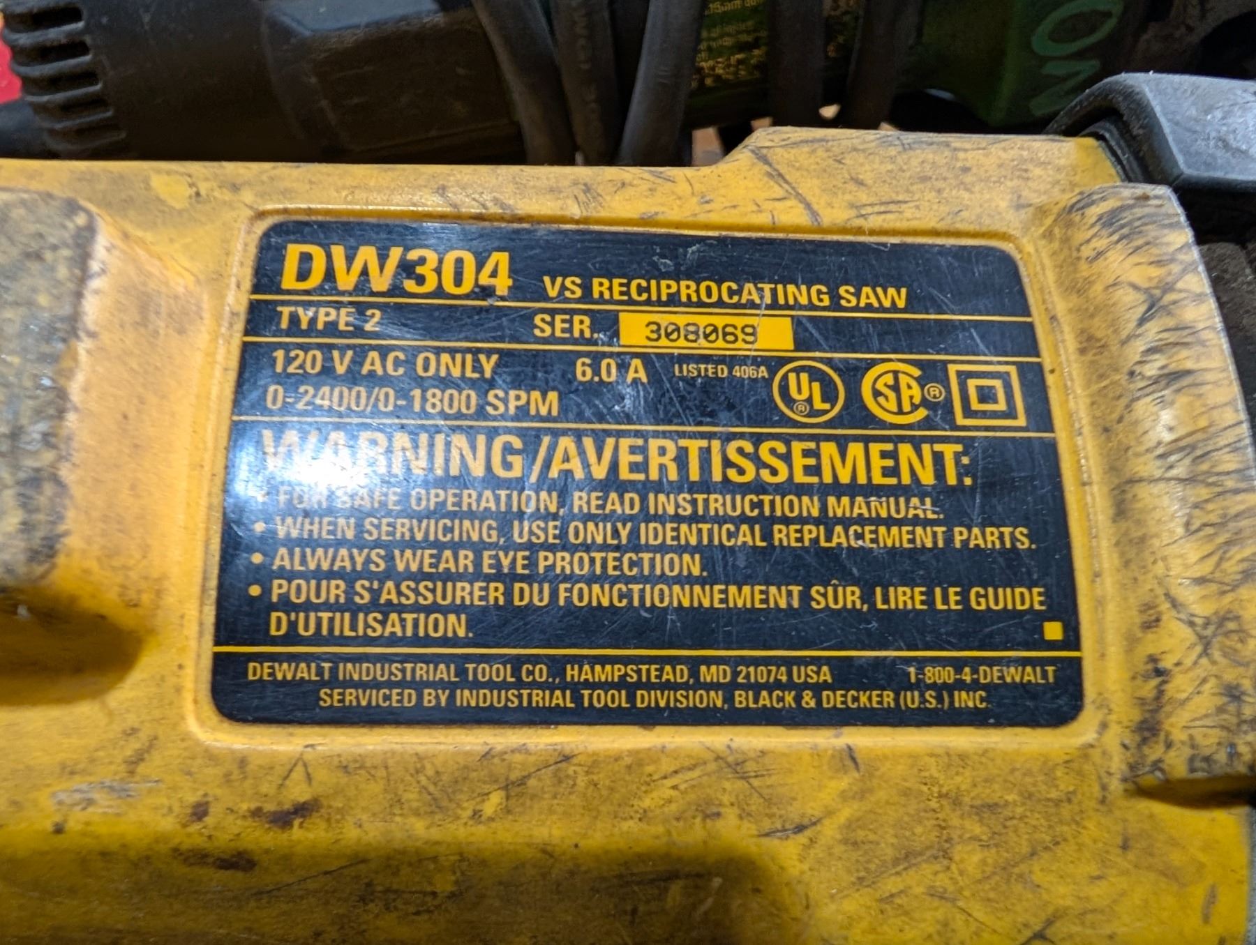 LOT:SCIE ALTERNATIVE ÉLECTRIQUE DEWALT #DW304 ET MEULEUSE D'ANGLE 5" HITACHI #G1252