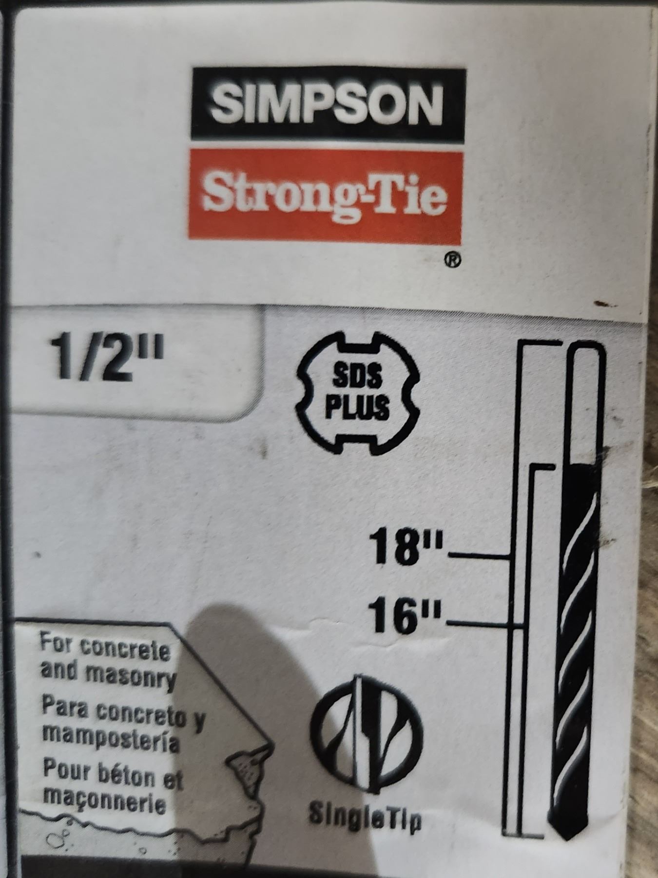 MÈCHES À BÉTON/MAÇONNERIE 1/2" X 18"-16 SIMPSON