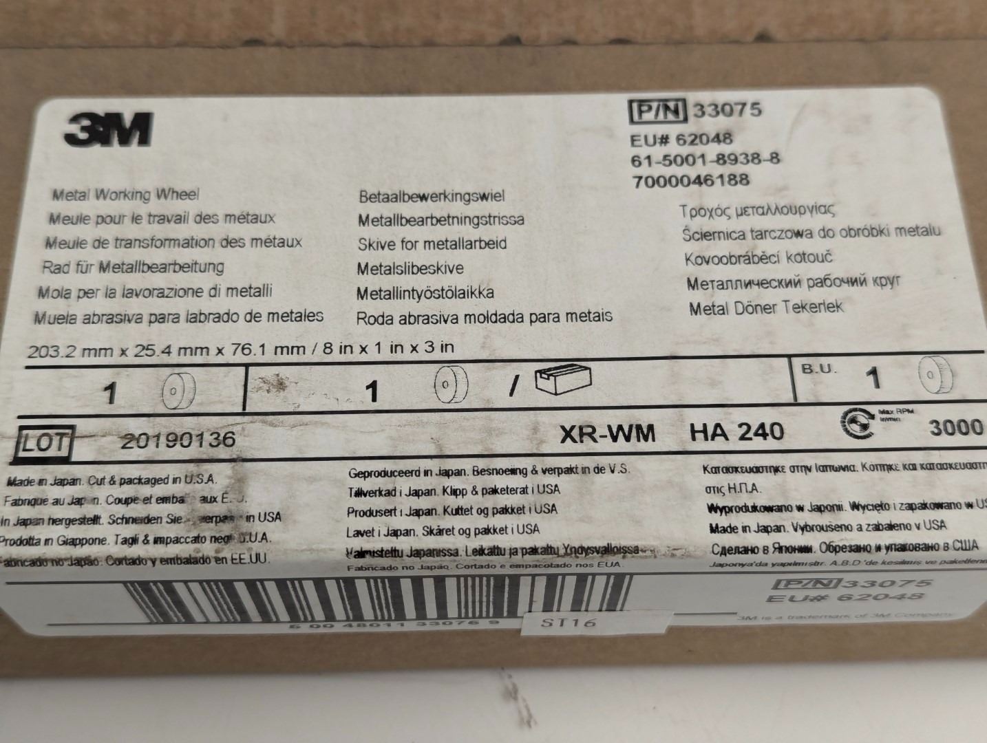 MEULE POUR LE TRAVAIL DES METAUX 8"x1"x3" 3M 33075