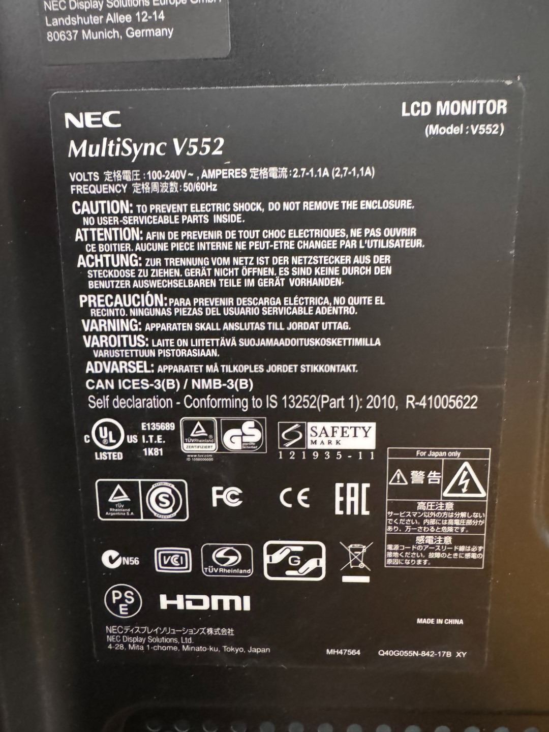 MONITEUR 55" NEC MULTISYNC V552