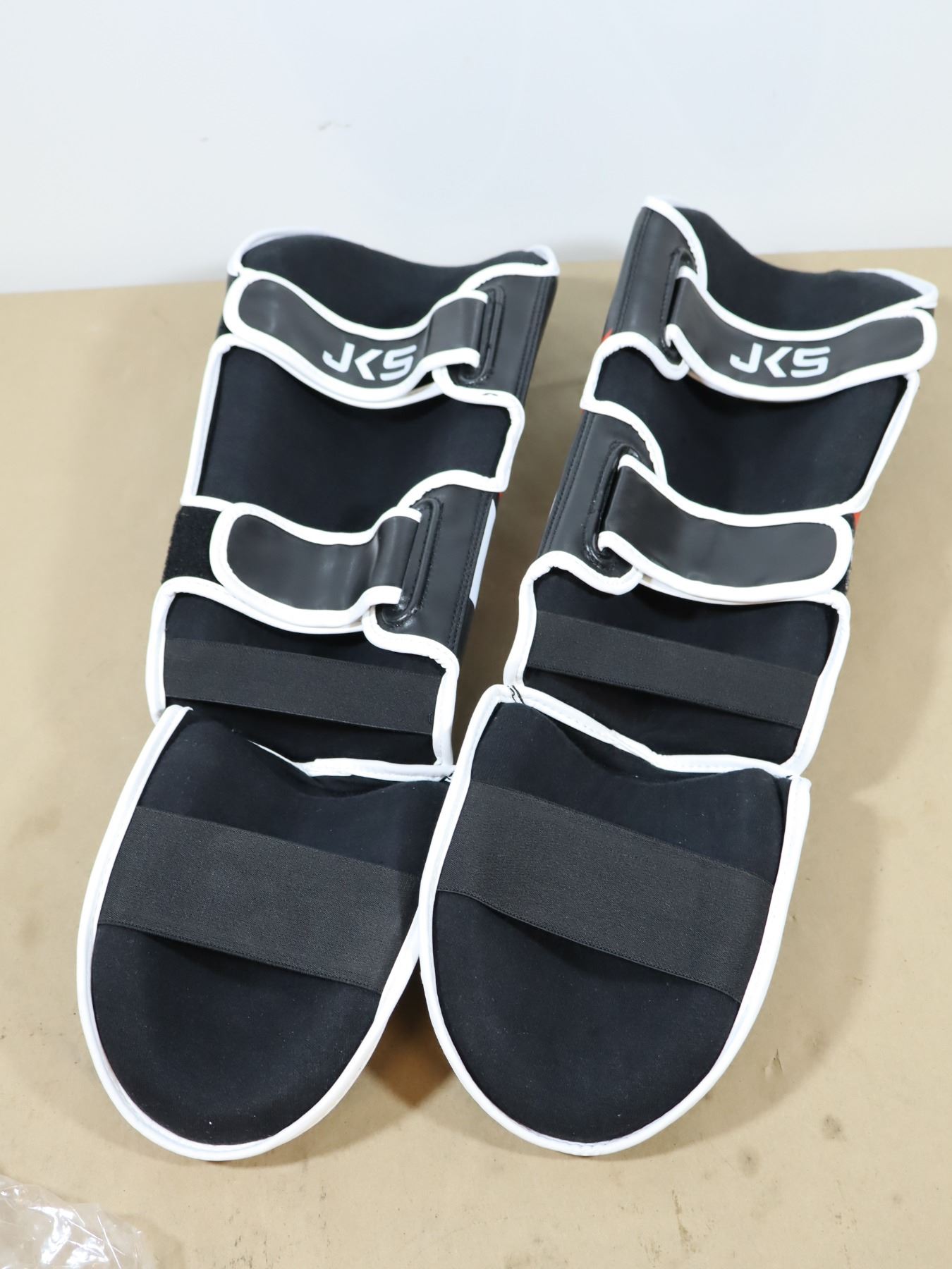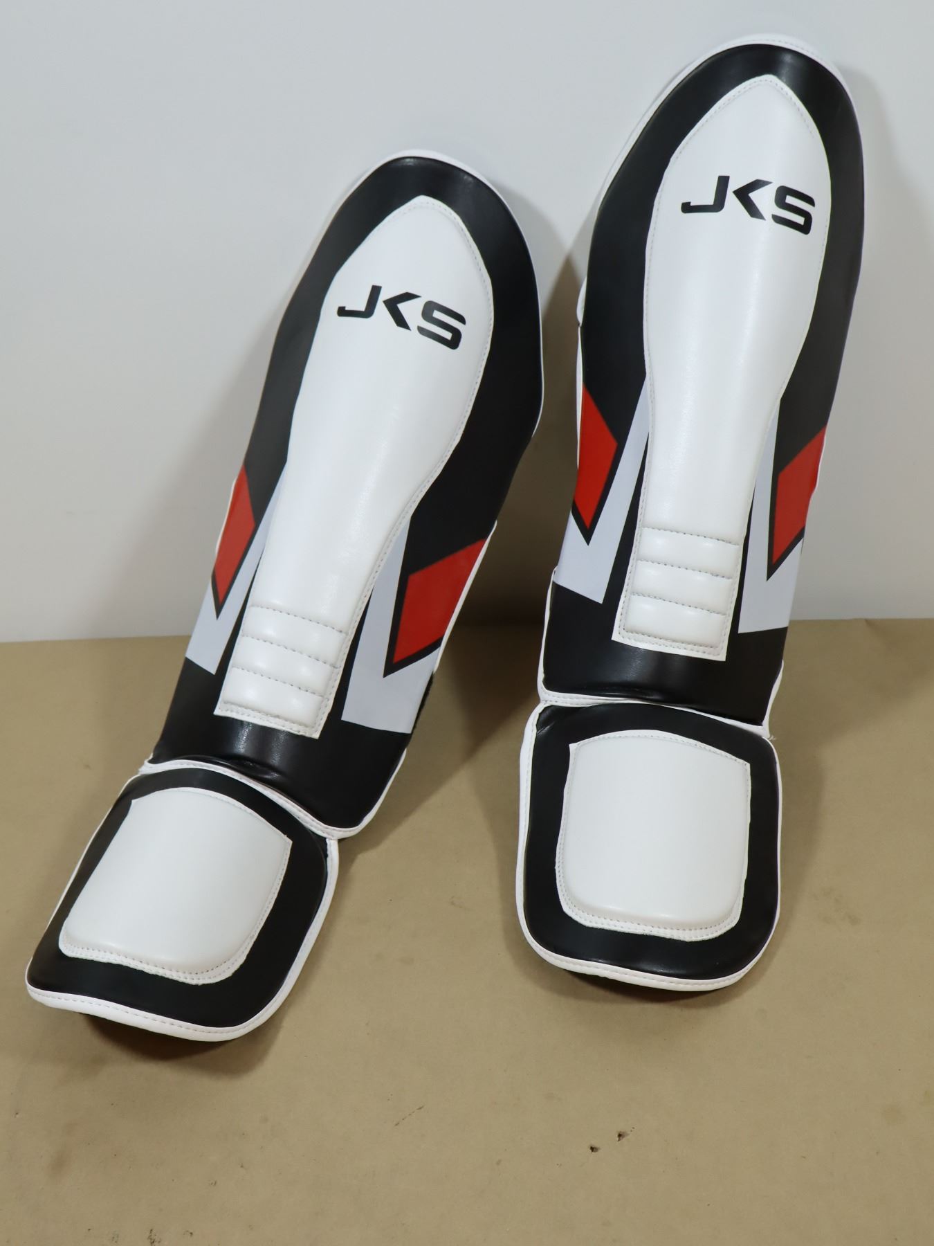 PAIRE DE PROTÈGE-TIBIAS LOGO JKS BLANC/ROUGE/NOIR GR: ASST *NEUF*