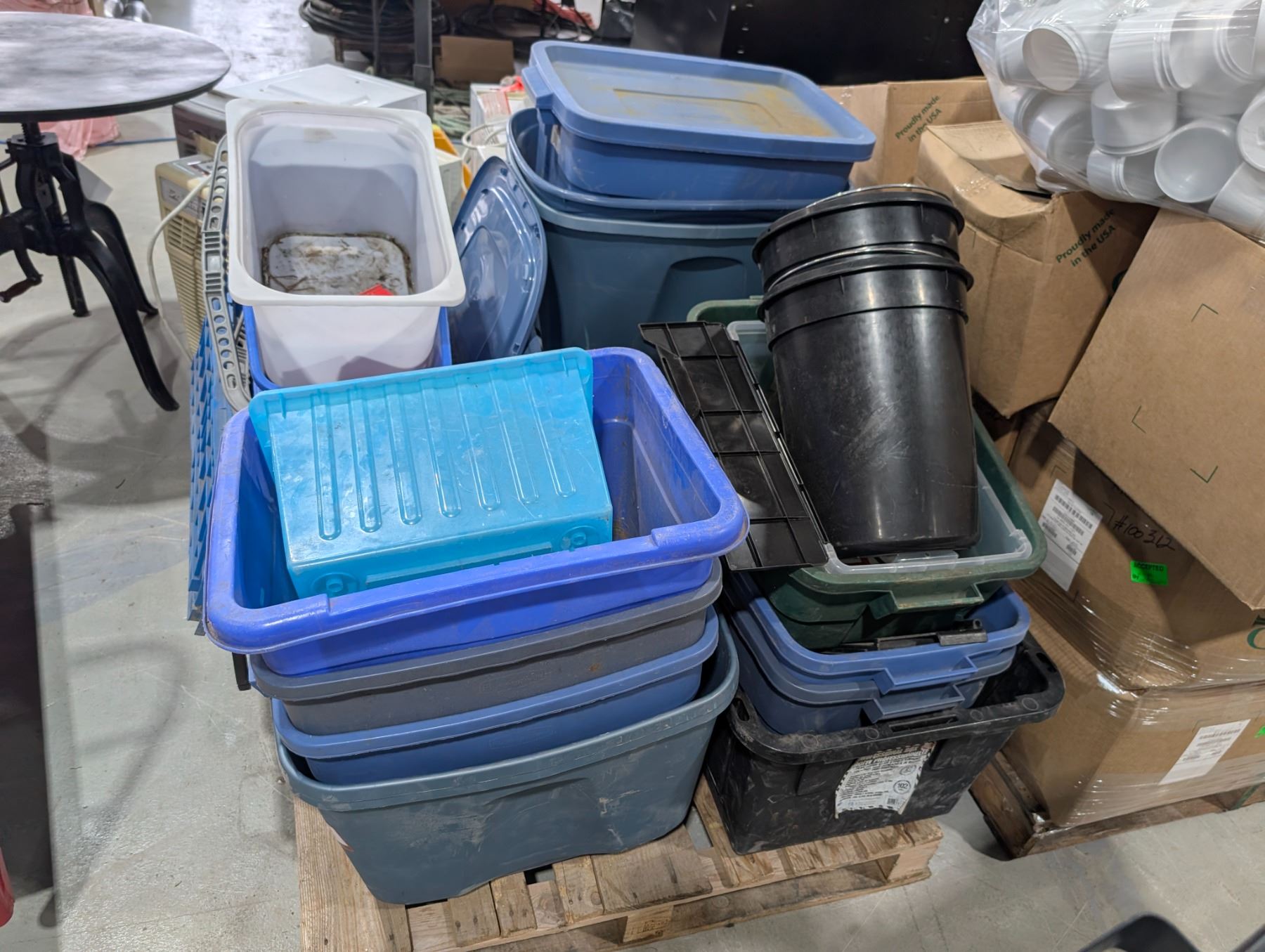 PALLET OF ASSORTED STORAGE BINS