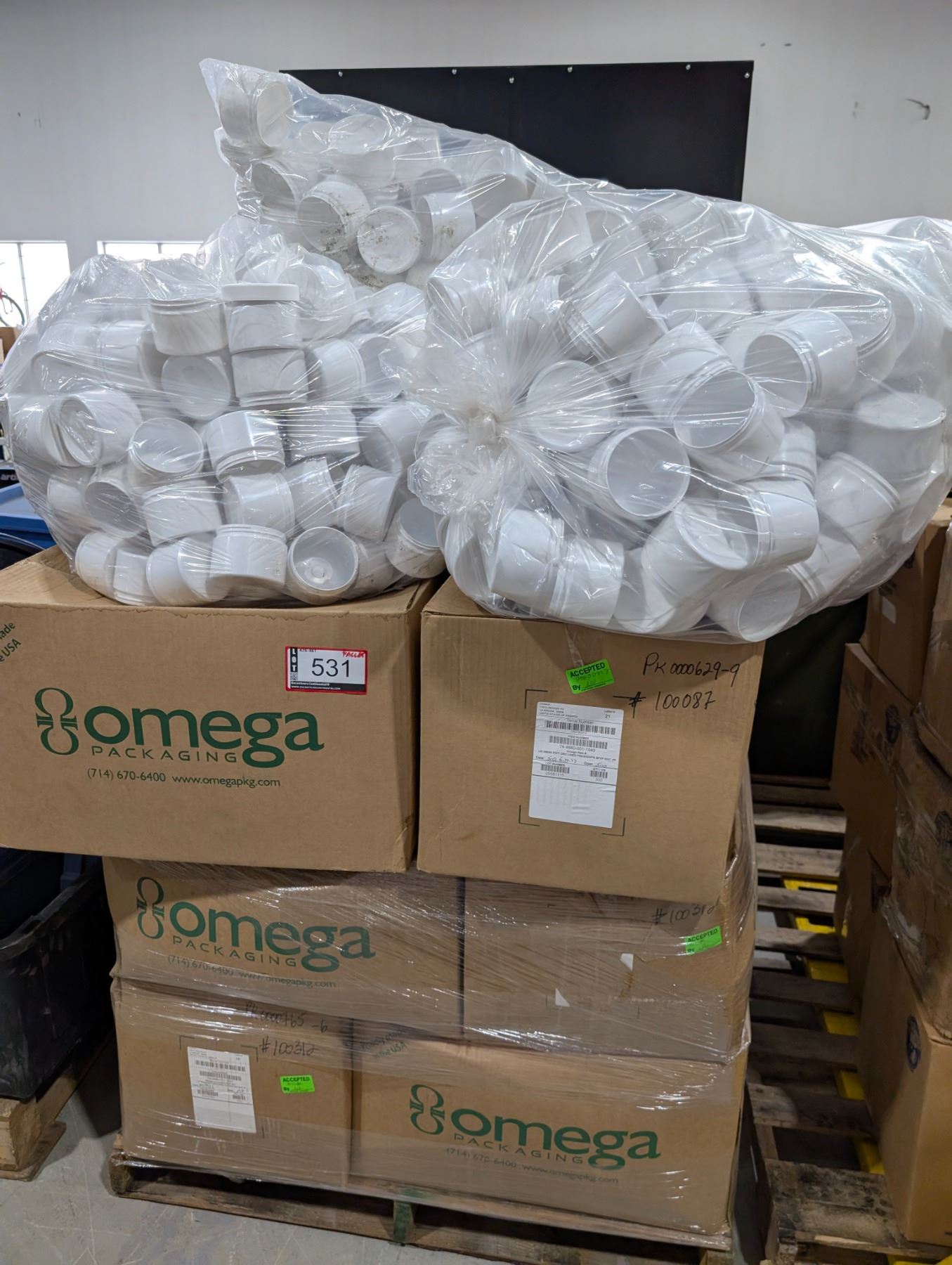 PALLET OF PLASTIC CONTAINERS WITH LIDS