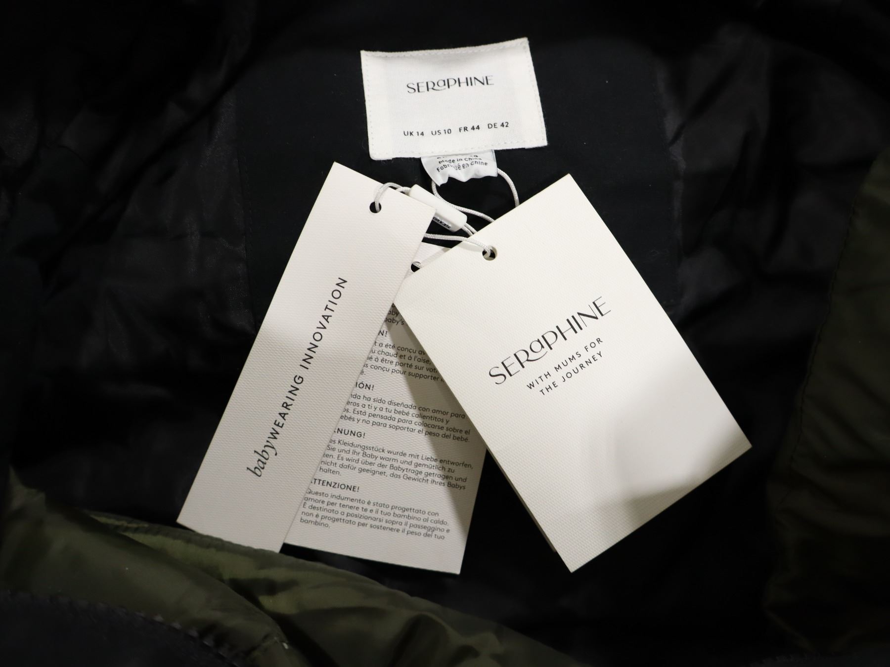 PARKA 4-EN-1 PUFFER SÉPARÉ PORTE-BÉBÉ SERAPHINE NOIR CAPUCHON