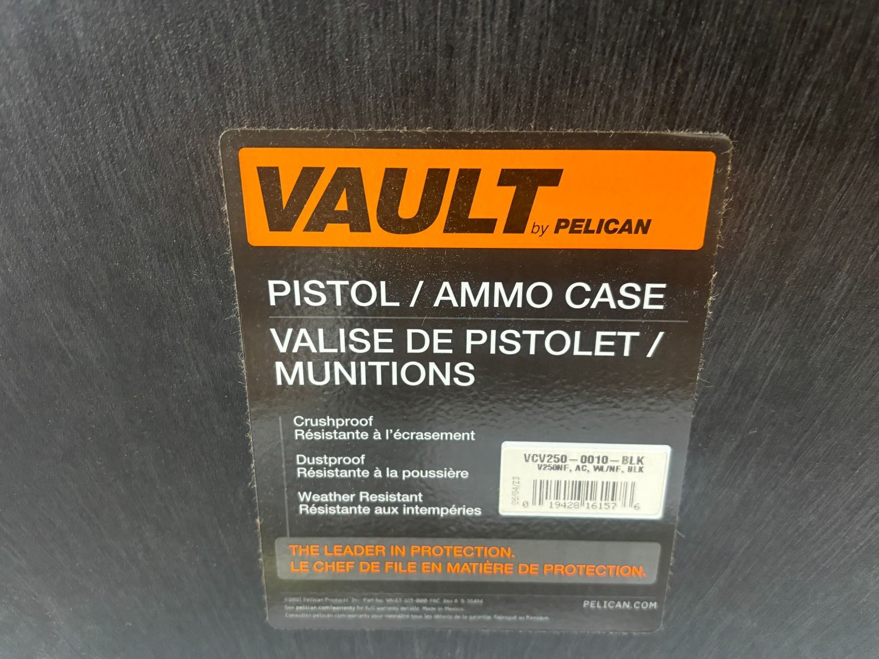 PELICAN VAULT PISTOL / AMMO CASE 6"x12"x10"