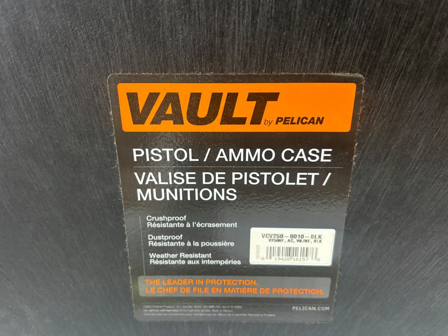 PELICAN VAULT PISTOL / AMMO CASE 6"x12"x10"