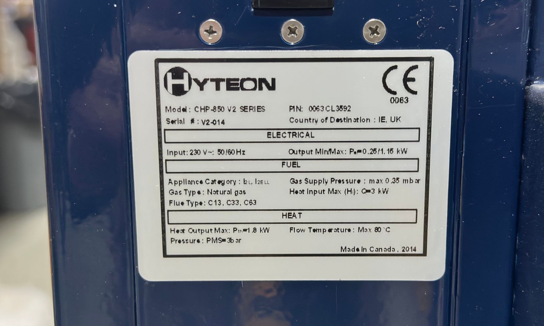 HYTEON CHP 850 V2 PROTON ECHANGE MEMBRANE FUEL CELL