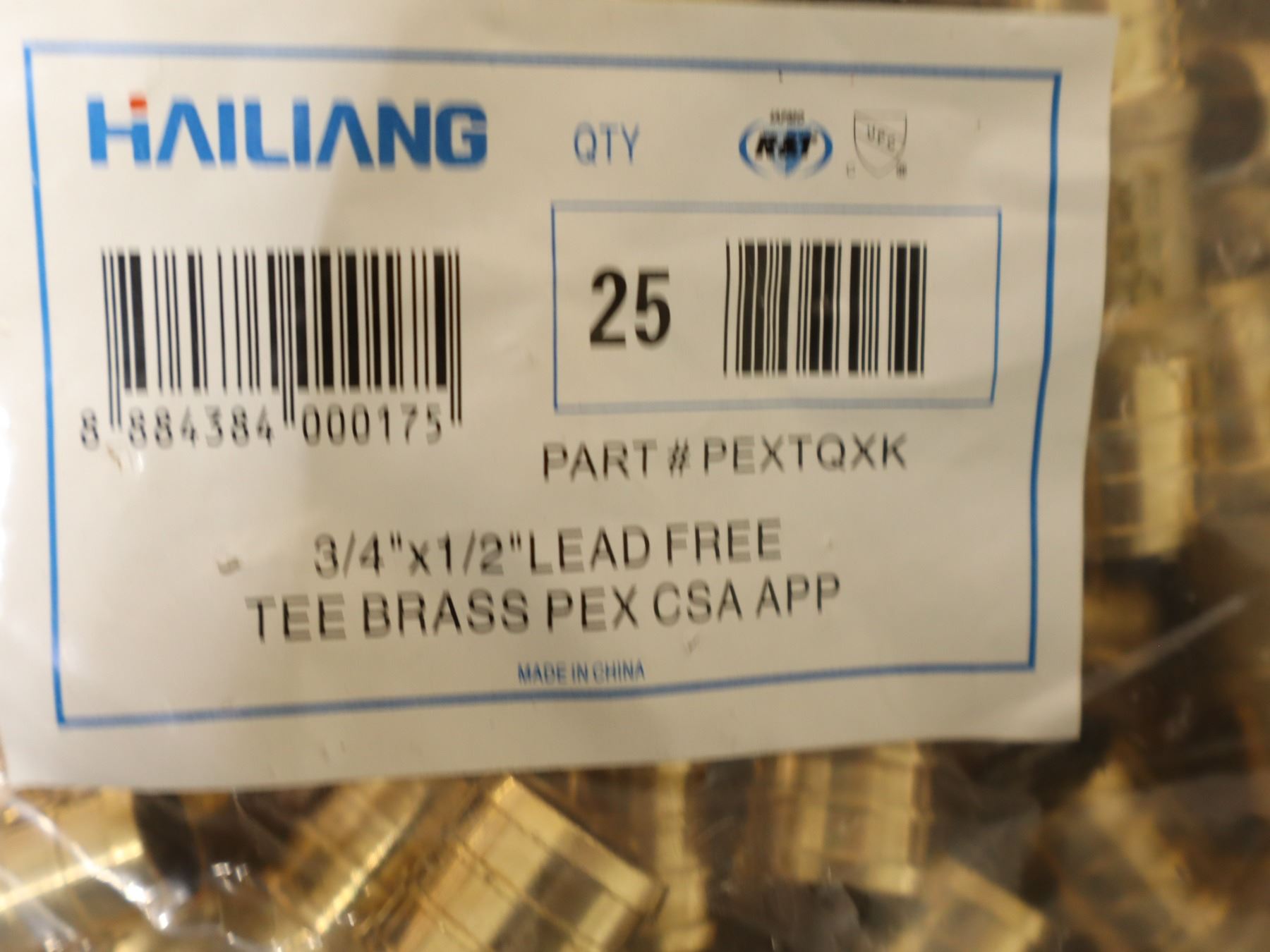 PKG DE 25pcs DE 3/4"x1/2" TEE BRASS PEX CSA APP HAILIANG #PEXTQXK