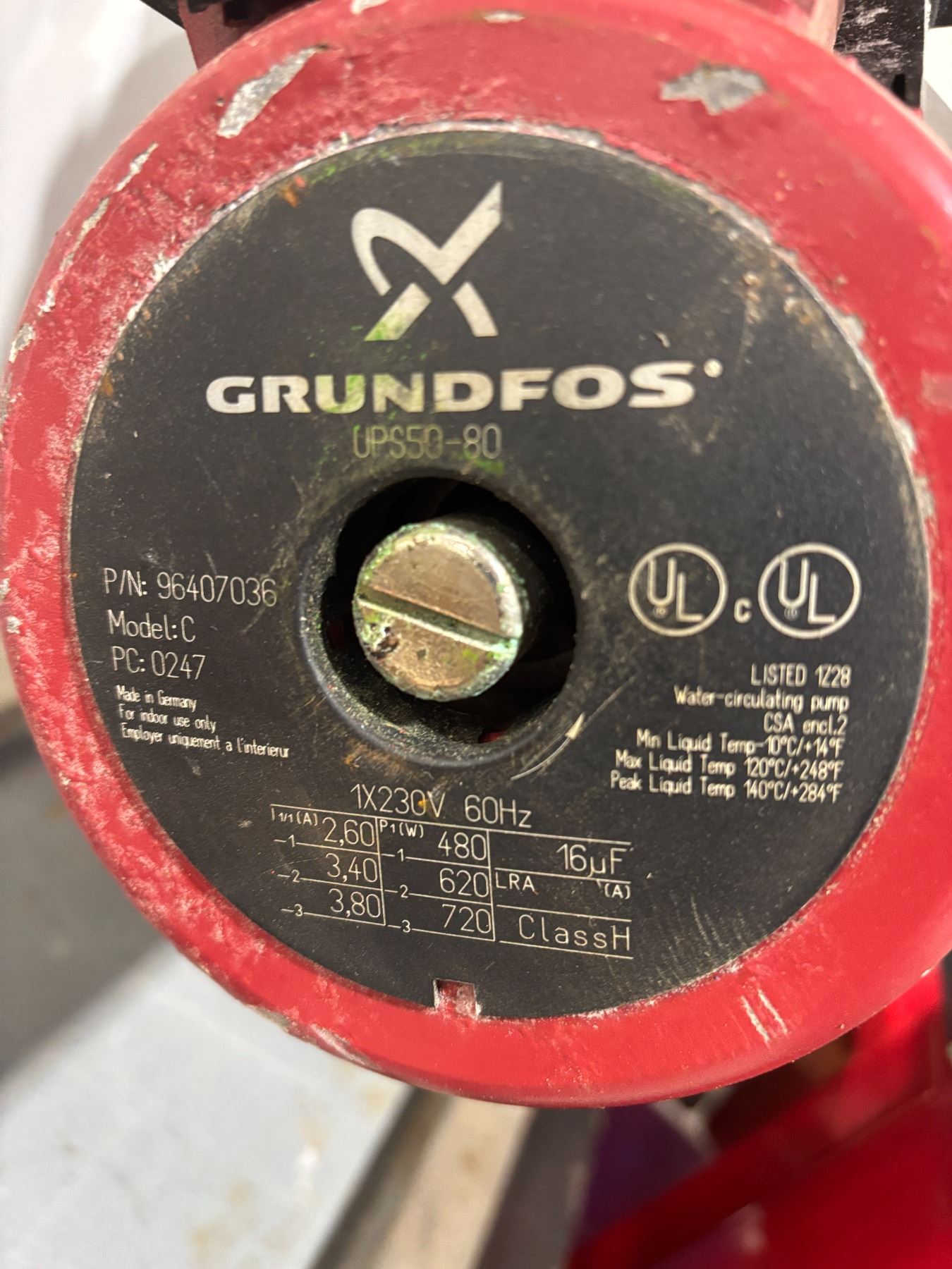 GRUNDFOS UPS50-80 PUMP #96407036 MODEL C