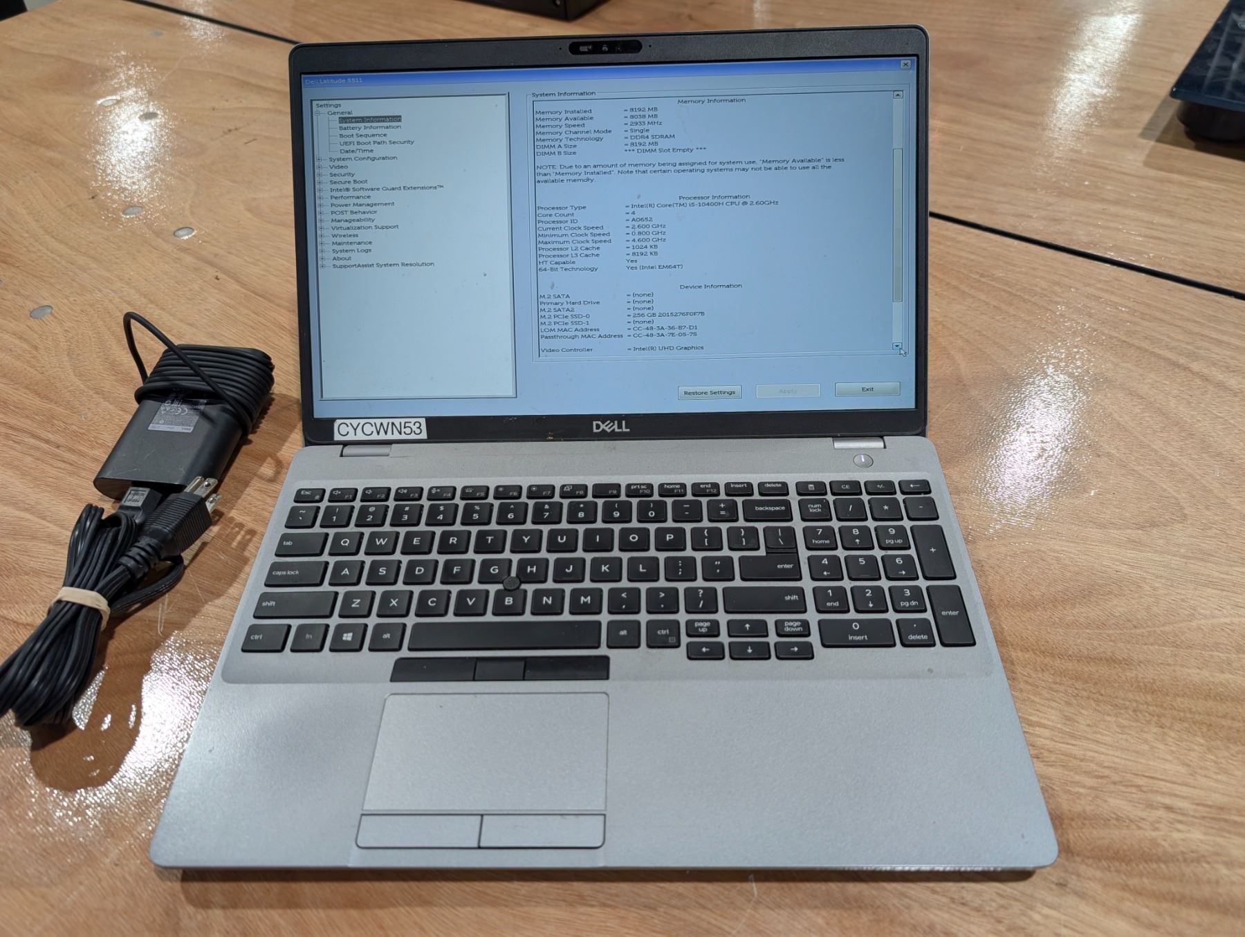 PORTABLE DELL LATITUDE 5511 15.6" i5-10400H