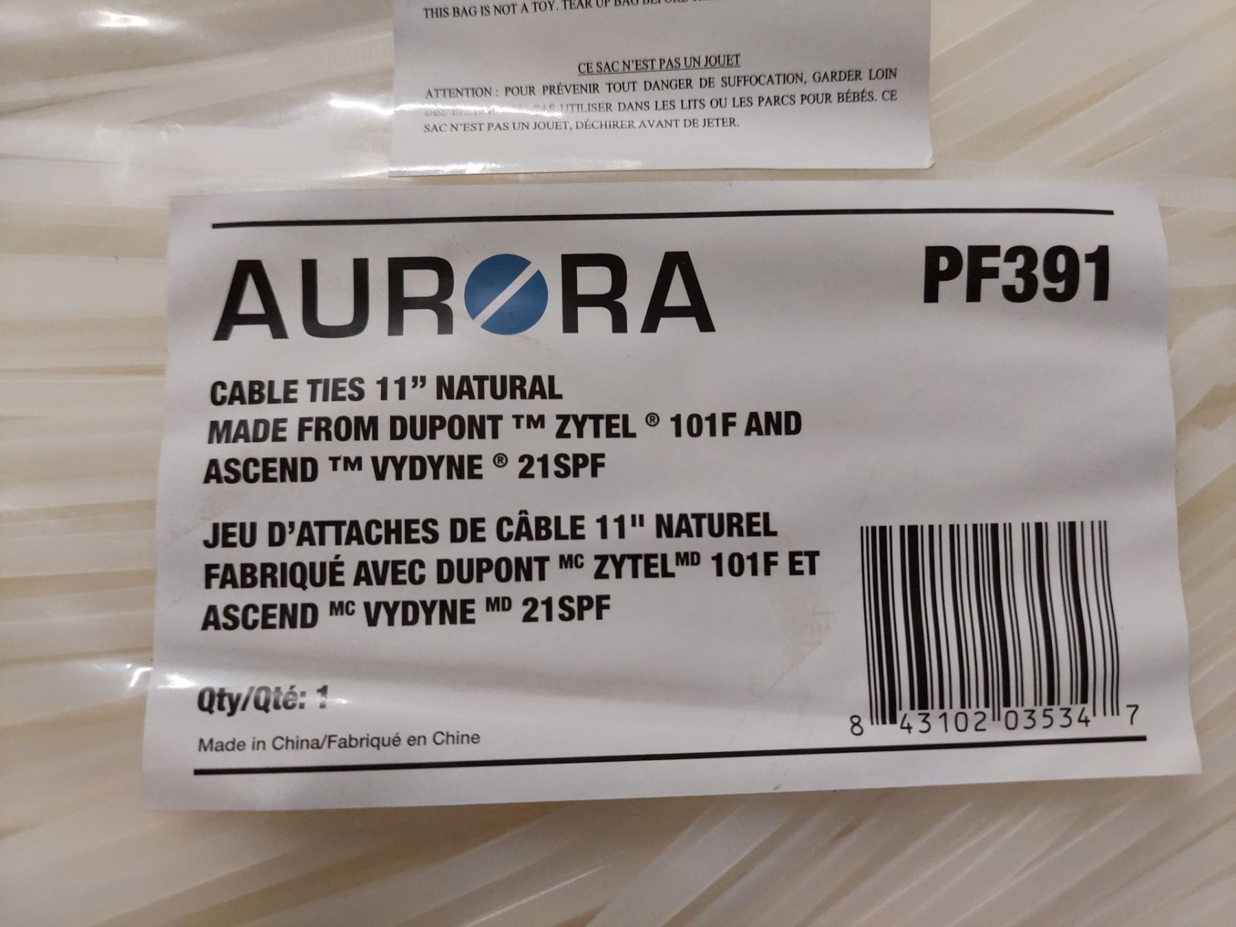 PQT/250 ATTACHES DE CÂBLE 11" NATUREL PF391 AURORA