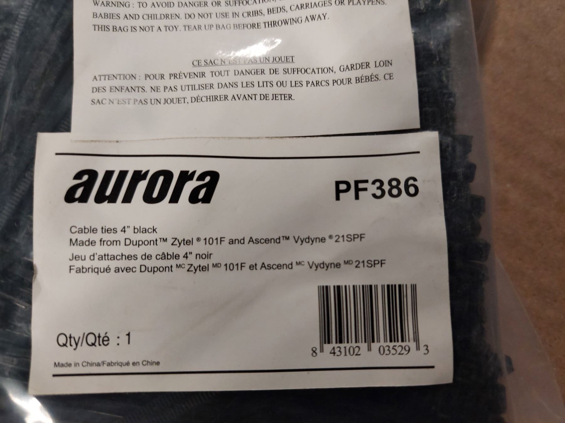 PQT/500 ATTACHES DE CÂBLE 4" NOIR PF386 AURORA