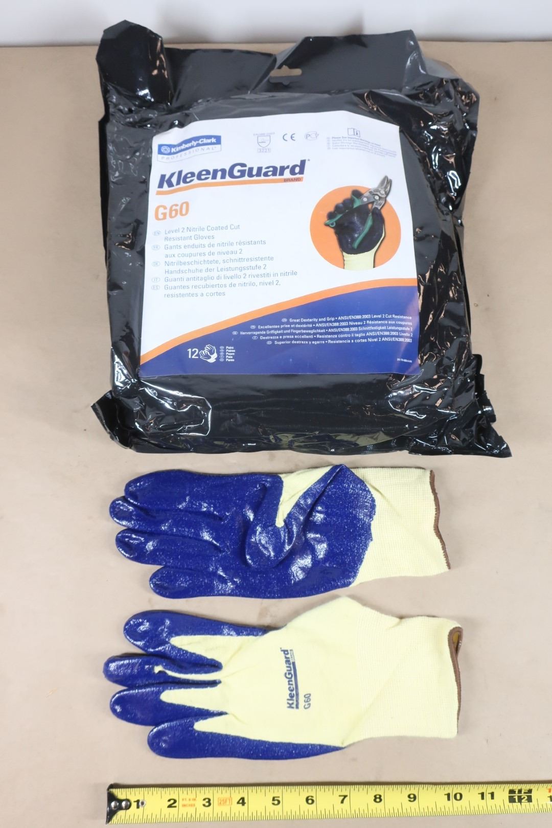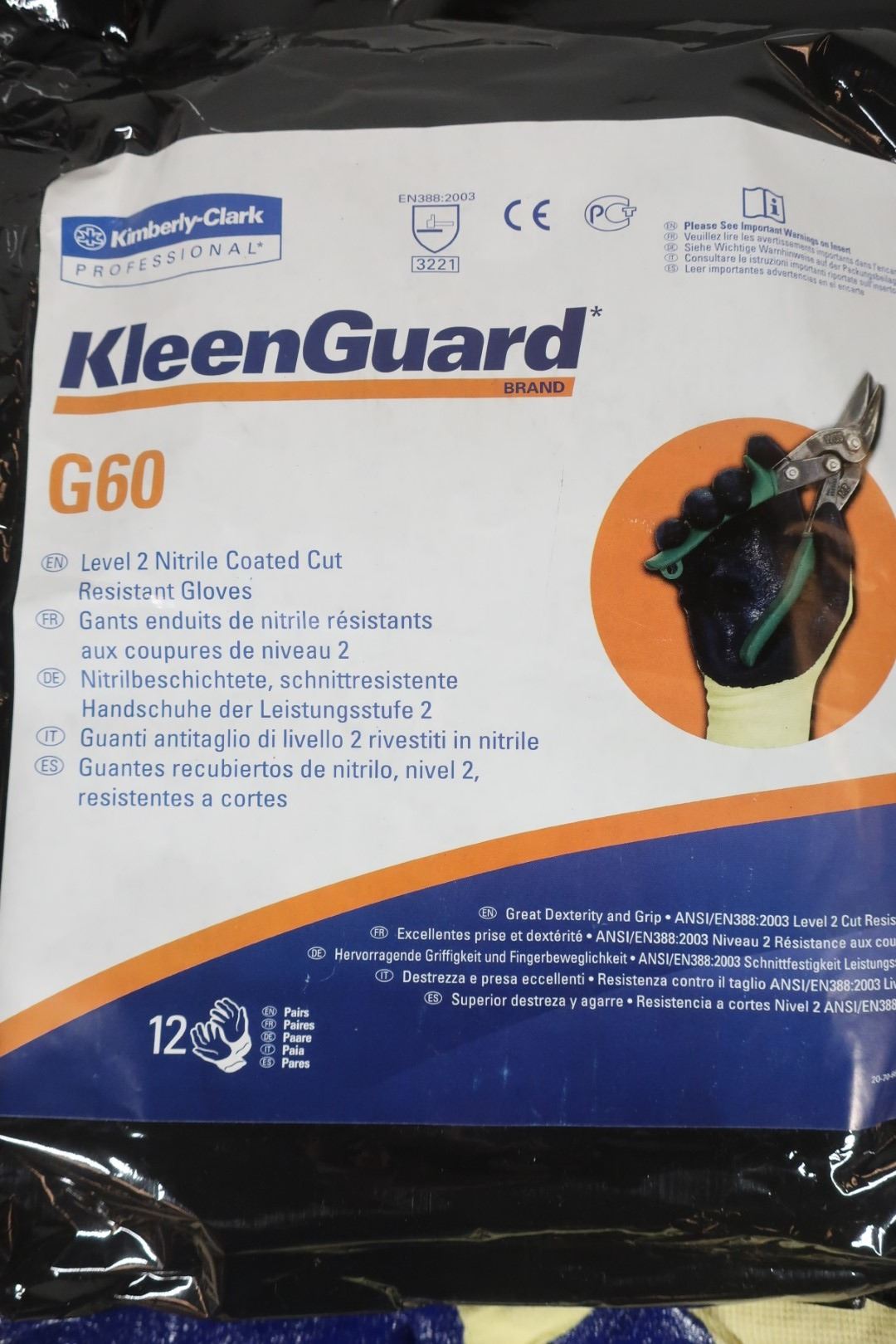 PQT DE 12 PAIRES DE GANTS RÉSISTANTS AUX COUPURES KLEENGUARD G60, TAILLE 2T-GRAND/11, CALIBRE 15, RE