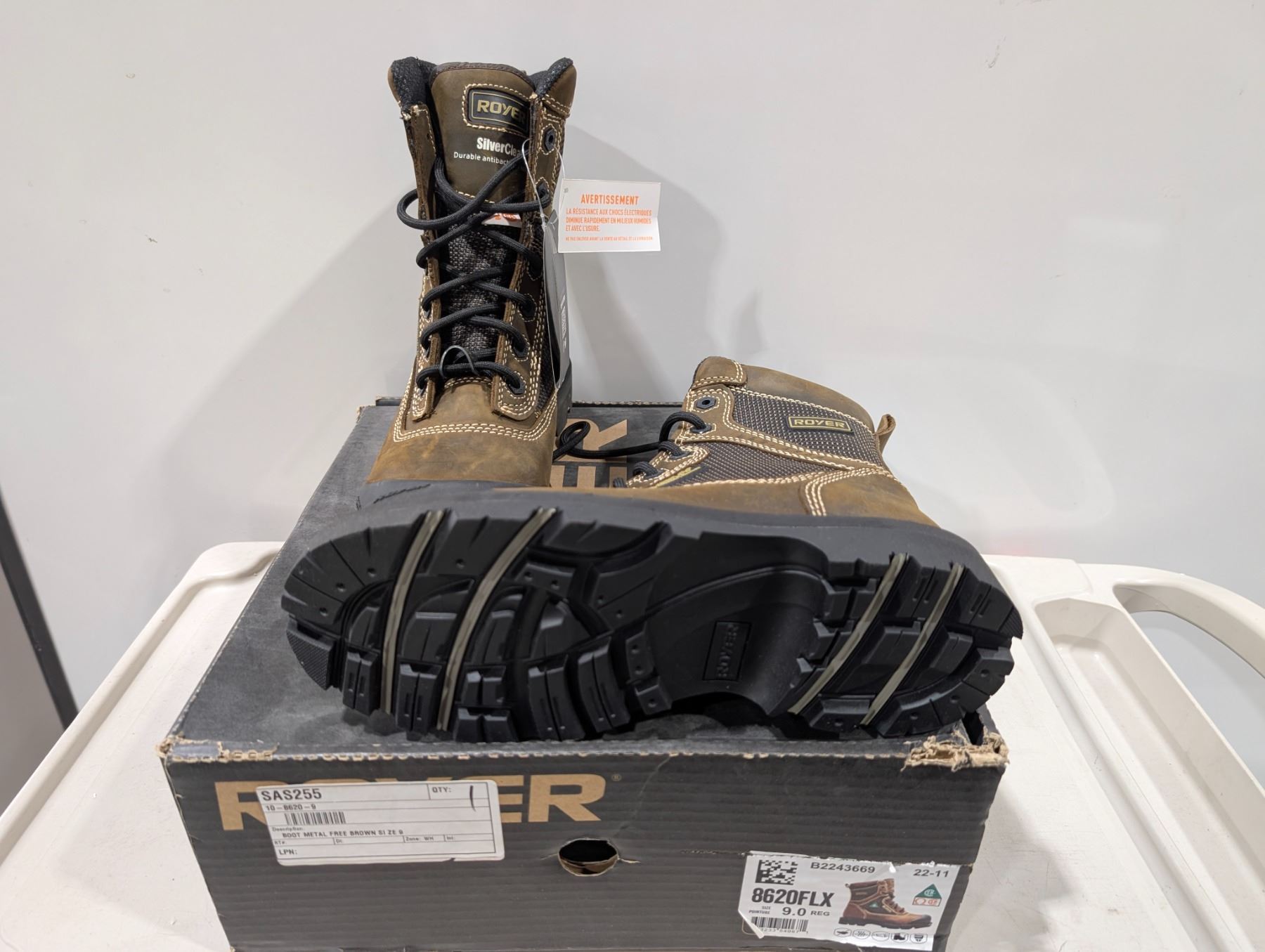 BOTTES DE SÉCURITÉ ROYER 8620FLX GR:9 MÉTAL SANS (BRUN)