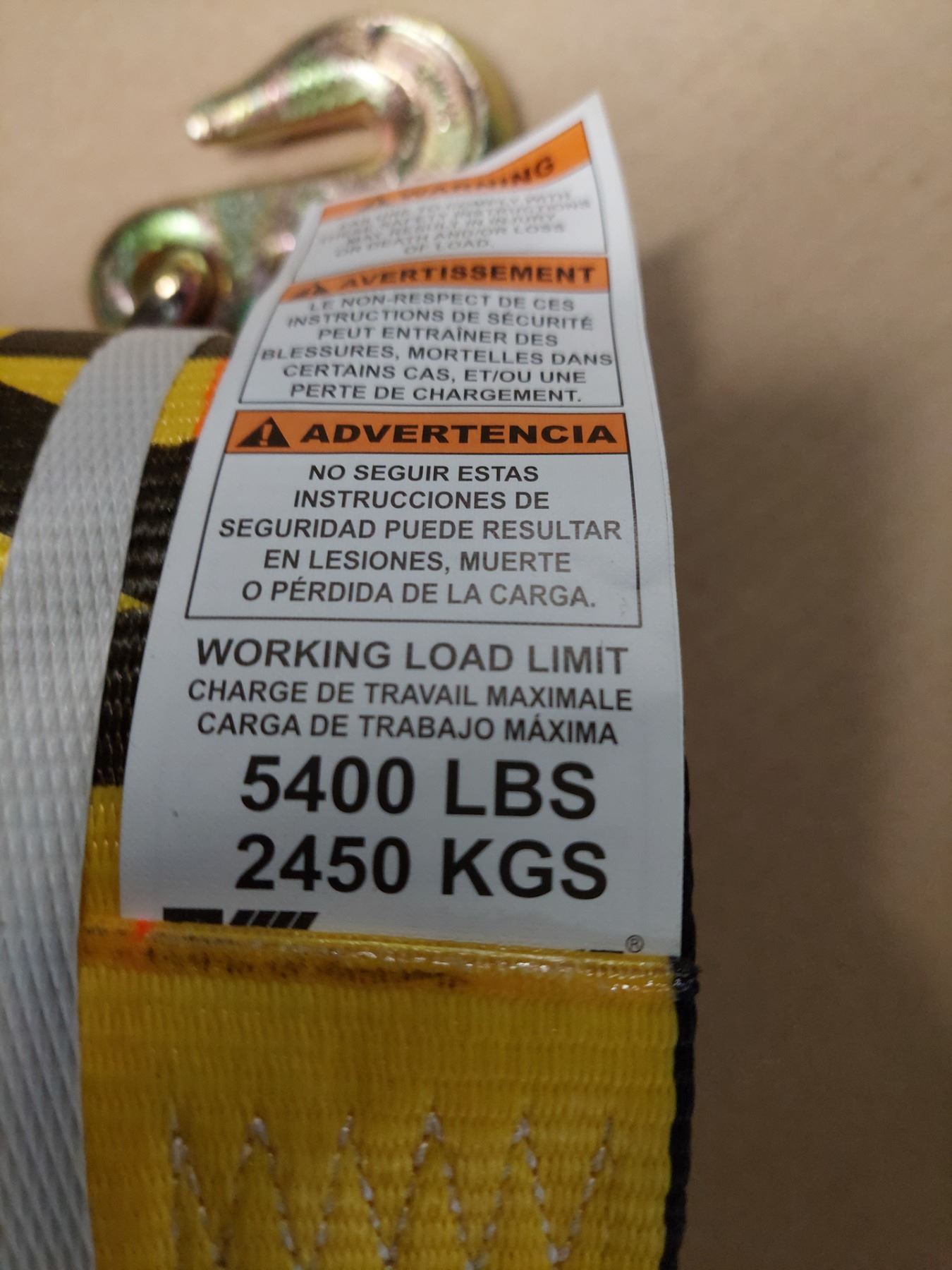 STRAP AVEC CROCHETS 3/8" - 5400 LBS KINEDYNE