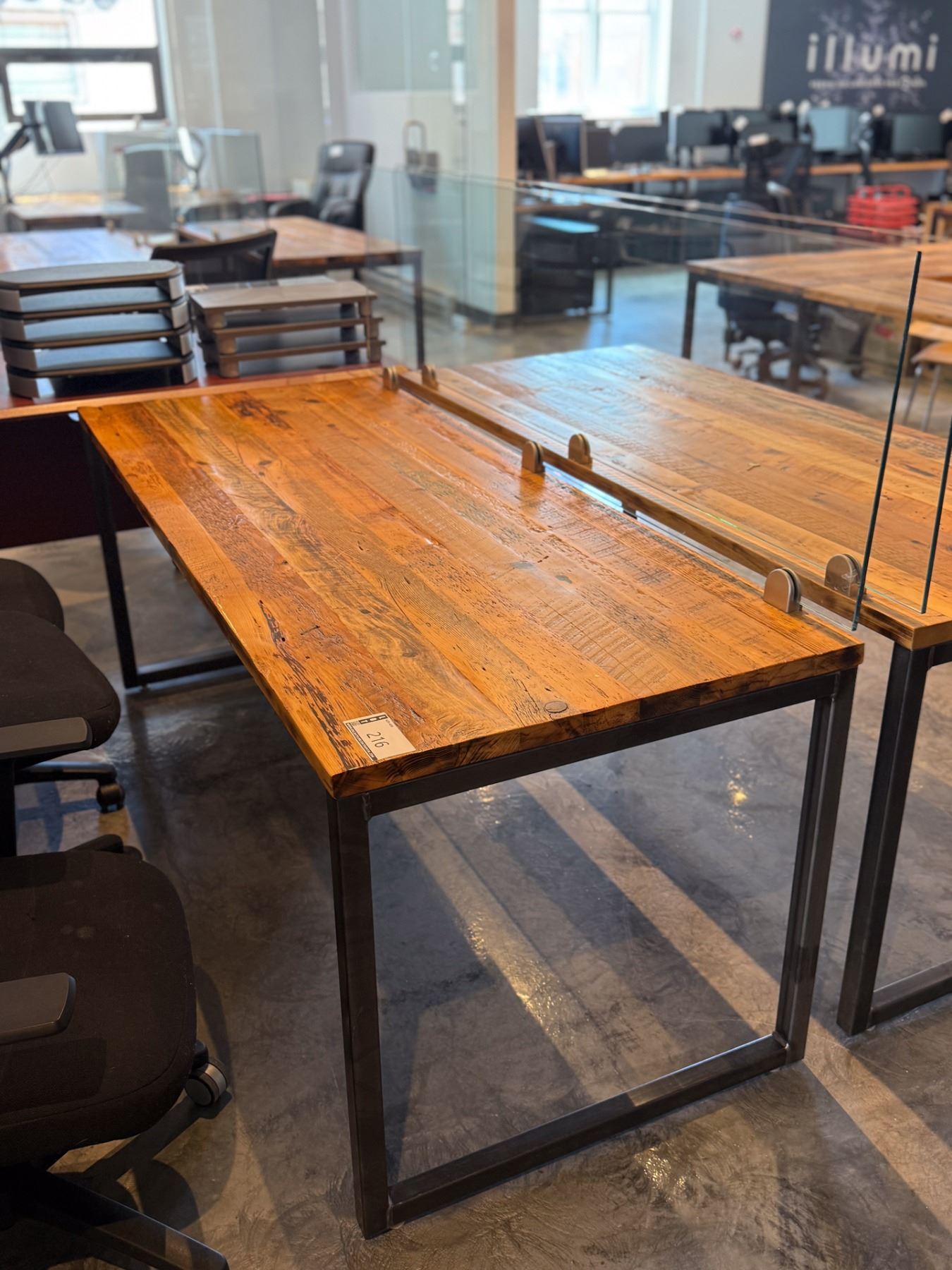 TABLE DE TRAVAIL 72"x 32" AVEC DESSU EN BOIS STYLE ANTIQUE AVEC SÉPARATEUR VITRÉ
