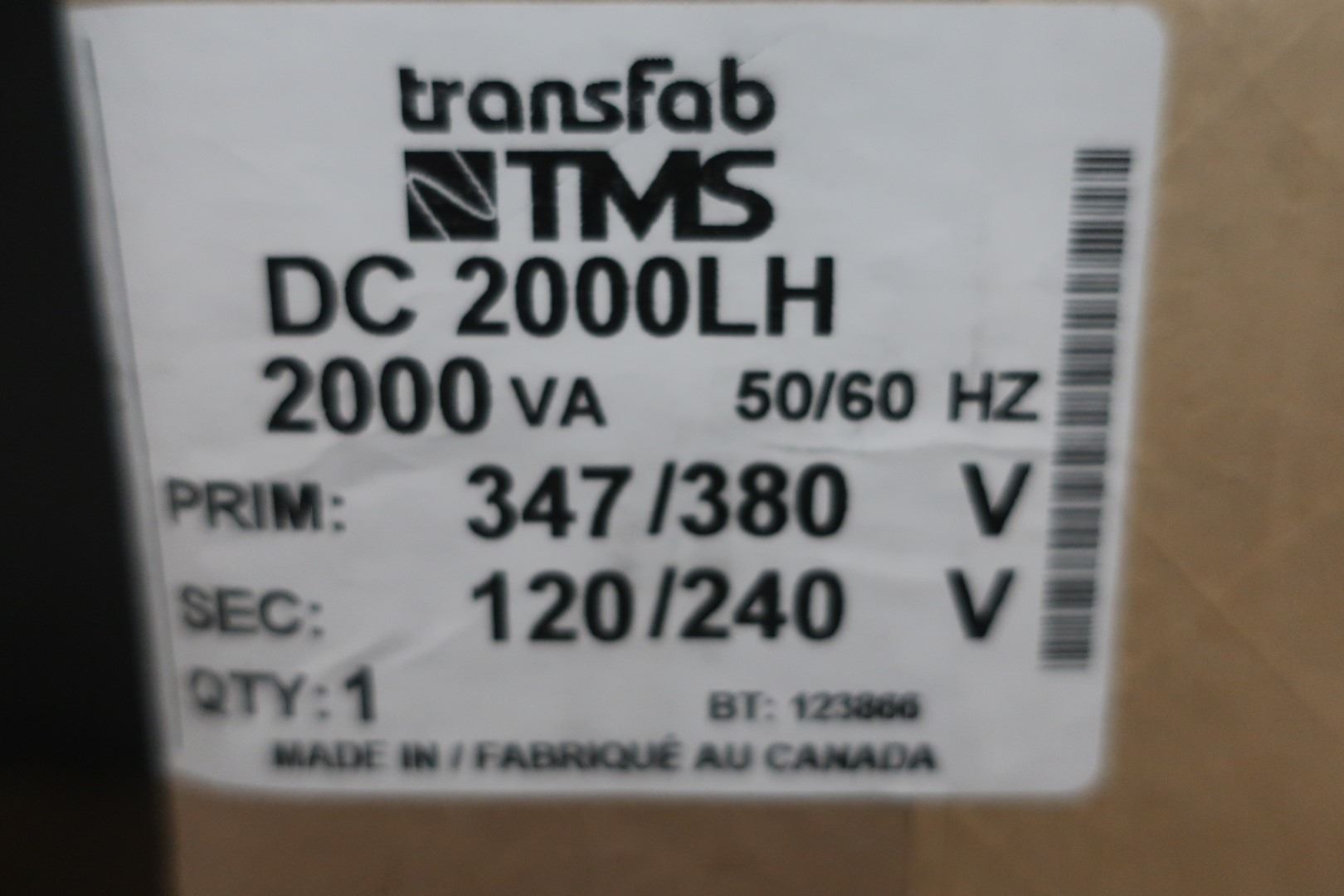 TRANSFAB TMS 347/380 TRANSFORMERS -120/240v