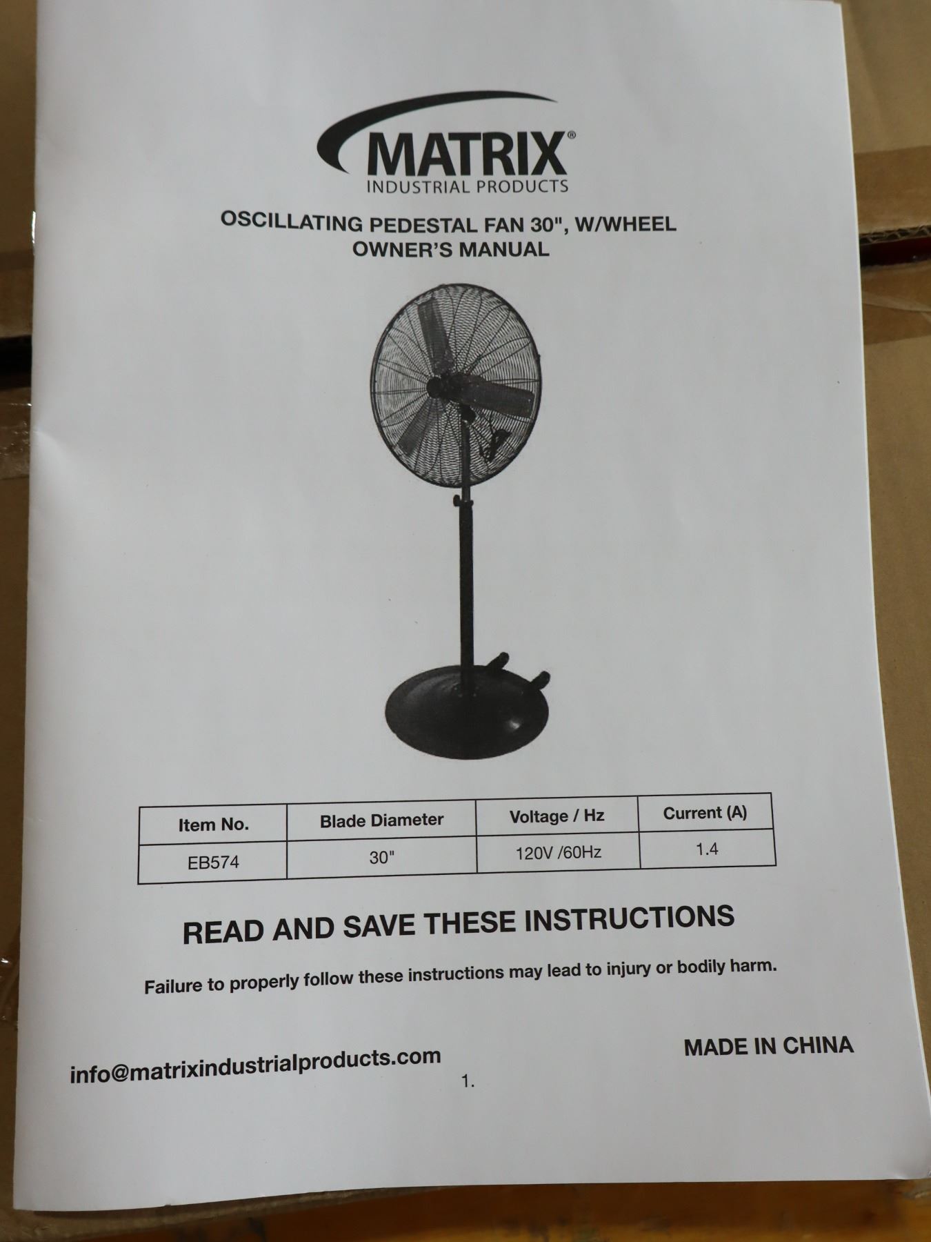VENTILATEUR 30" SUR PIED AVEC ROULETTES MATRIX EB574