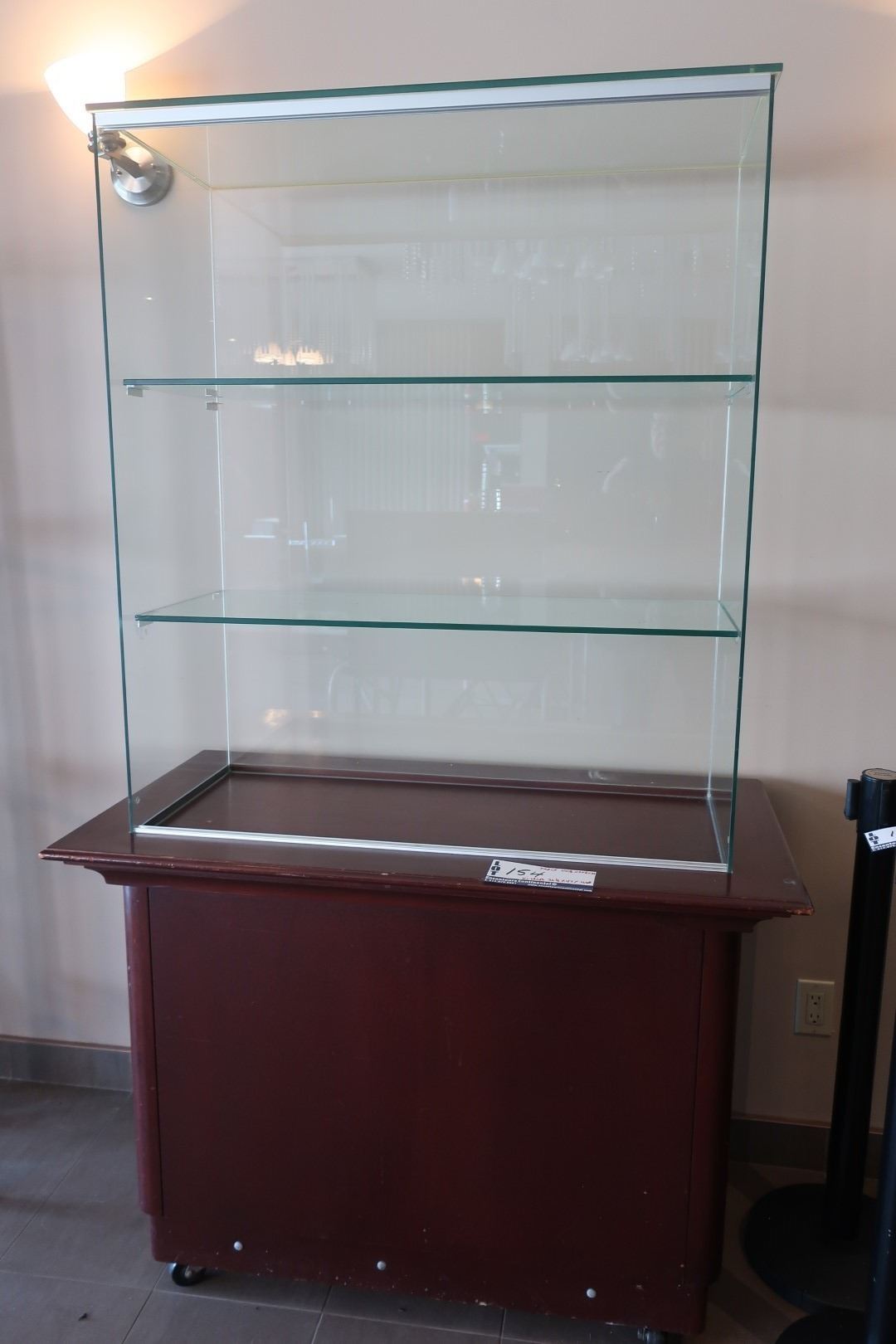 DISPLAY CASE ON MOVABLE WOODEN BASE 44"x24"x74"