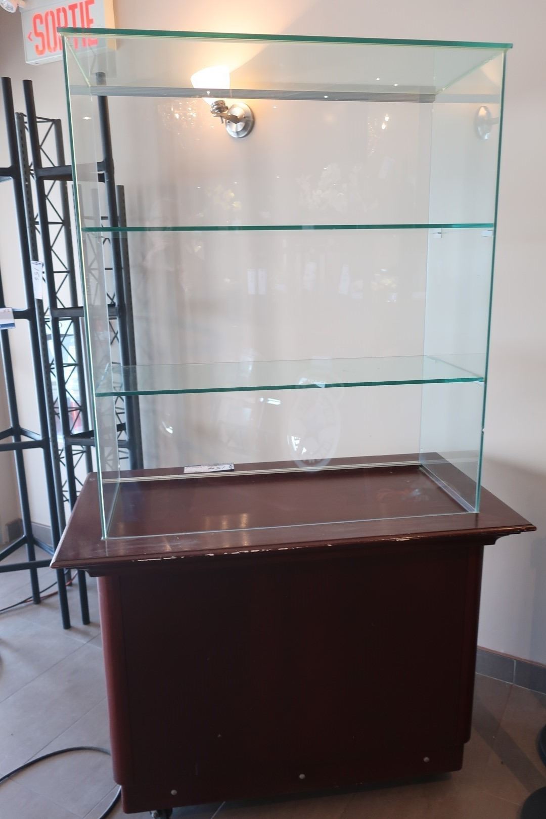 VITRINE SUR BASE EN BOIS MOBILE 44"x24"x74"