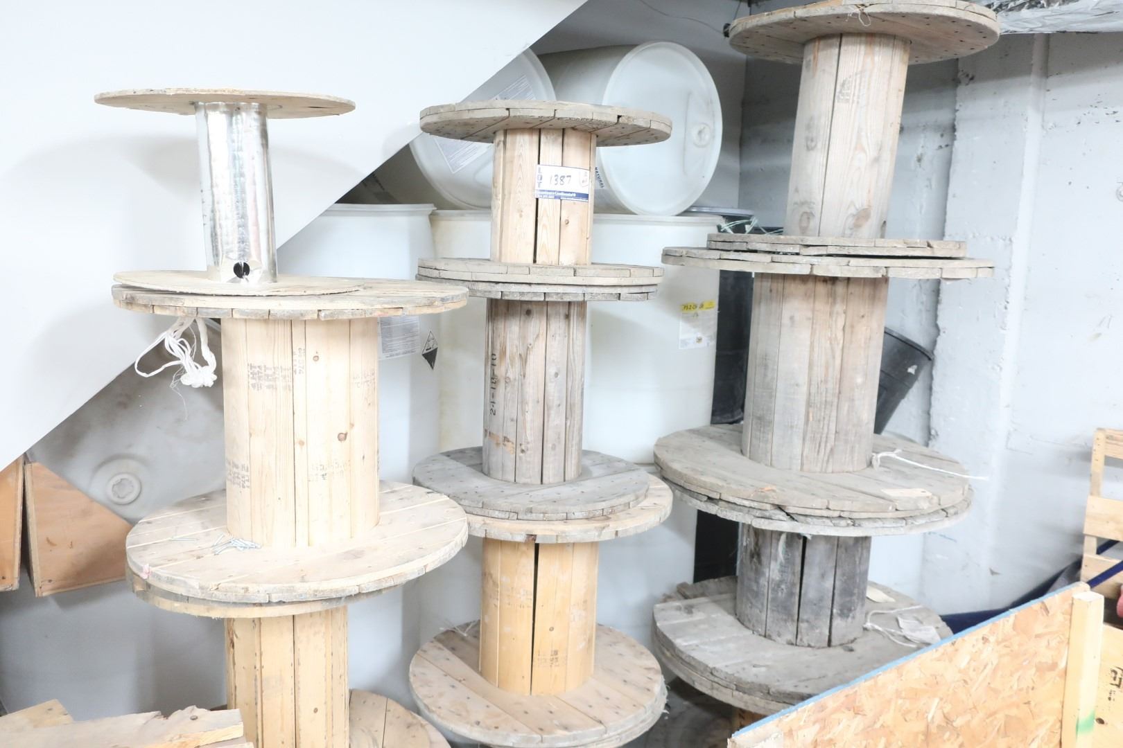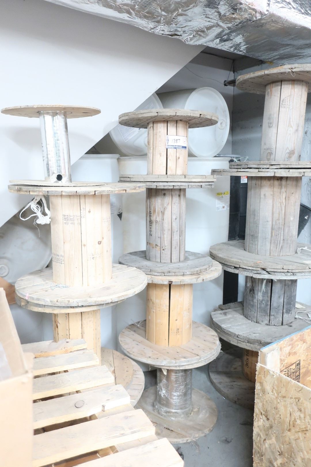 LOT OF 11 WOODEN SPOOLS ASST